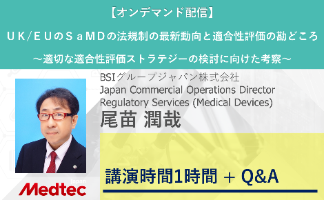 本セミナーでは、UK/EUのSaMDの法規制の最新動向について、マニュファクチャラが確実に理解しておくべき基本的な知識を整理しながら、実際の適合性評価の準備にあたり、意識的にフォーカスにしておくべき重要なポイントや勘どころの解説を行います。2021年5月26日にEUでは、医療機器規制(MDR)のDate of Applicationを過ぎ、新たな適合性評価スキームに置き替りました。SaMDについて、新たなEU医療機器規制(MDR)の適合性評価等で得られた学びを交えてお話を致します。また、EU離脱後のUKの内、グレートブリテン(GB)では、2023年7月に医療機器を対象に新しいUKCAマーキングの強制化期限を迎えますので、UKCAマーキングの切り口でもSaMDの整理を行い、適切な適合性評価ストラテジーの検討に向けた考察も行います。