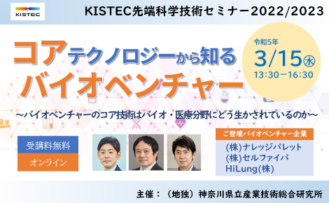 KISTEC先端科学技術セミナー「コアテクノロジーから知るバイオベンチャー」~バイオベンチャーのコア技術はバイオ・医療分野にどう生かされているのか~